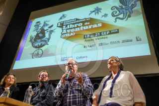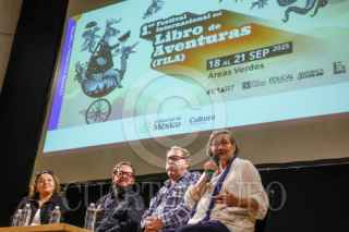 CIUDAD DE MÉXICO, 10SEPTIEMBRE2025.- Paco Ignacio Taibo II, director del Fondo de Cultura Económica, y Paloma Saiz Tejero, directora de La Brigada para Leer, anunciaron las actividades del 1er Festival Internacional del Libro de Aventuras (FILA), que se realizará del 18 al 21 de septiembre en las áreas verdes del Centro Nacional de las Artes. FOTO: MOISÉS PABLO/CUARTOSCURO.COM