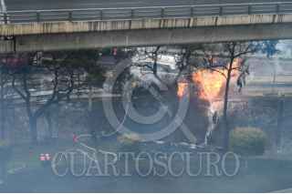 CIUDAD DE MÉXICO, 10SEPTIEMBRE2025.- Derivado de la volcadura de una pipa en el Puente de la Concordia, alcaldía Iztapalapa, se registró una explosión en la zona que provocó que varios vehículos quedarán calcinados, con saldo de 18 personas con severas quemaduras. FOTO: AGENCIA CUARTOSCURO.COM