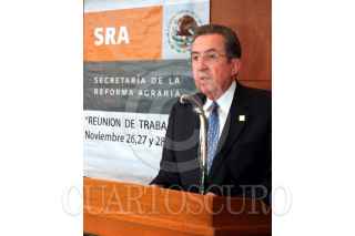 MÉXICO D.F., 26NOVIEMBRE2007.- El titular de la Secretaría de la Reforma Agraria, Abelardo Escobar Prieto, Inauguró la Primera Reunión Nacional de Representantes de la SRA, donde demandó más compromiso social con las familias campesinas. FOTO: CUARTOSCURO.COM