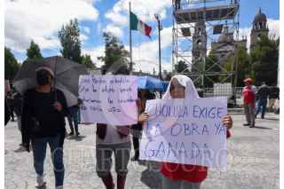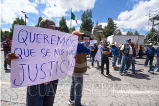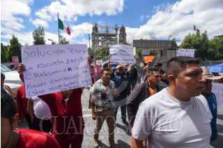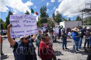 TOLUCA, ESTADO DE MÉXICO, 11SEPTIEMBRE2025.- Pobladores de San Pedro Cholula, del municipio de Ocoyoacac, con pancartas se manifestaron en Palacio de Gobierno. Llevan más de 20 días bajo aguas negras y no han obtenido respuesta por parte de autoridades municipales y estatales. Pidieron audiencia con la gobernadora Delfina Gómez y que les ayuden con esta problemática que tiene más de 25 años y afectó a los pobladores. FOTO: CRISANTA ESPINOSA AGUILAR/CUARTOSCURO.COM