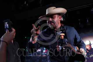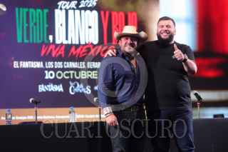 CIUDAD DE MÉXICO, 11SEPTIEMBRE2025. Gerardo Ortiz durante la conferencia de prensa del Tour 2025 Verde Blanco y Rojo, Viva México, donde presentaron su próxima fecha en la Arena Ciudad de México. FOTO: EDGAR NEGRETE LIRA/CUARTOSCURO.COM