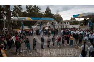TLAXCALA, TLAXCALA, 11SEPTIEMBRE2025.- Con una marcha pacífica, estudiantes de la Escuela Normal Rural Benito Juárez, ubicada en el municipio de Panotla,Tlaxcala realizaron un recorrido por la carretera federal hasta la gasolinera de Zaragoza, Totolac, donde depositaron una corona de flores en conmemoración del fallecimiento de una de sus compañeras ocurrido hace 24 años. FOTO: ALAIN HERNÁNDEZ/CUARTOSCURO.COM