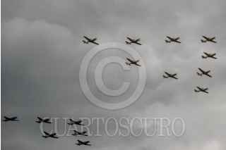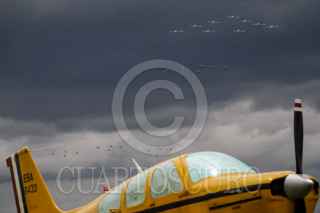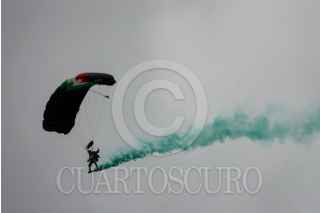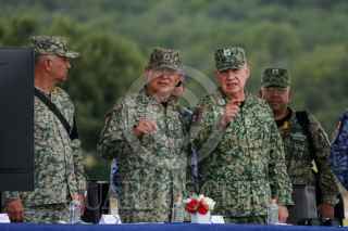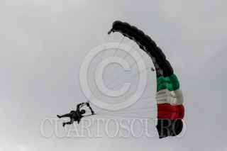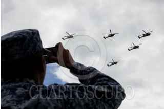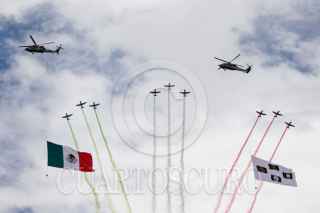 ATLANGATEPEC, TLAXCALA, 12SEPTIEMBRE2025.- Arturo Coronel Flores, Jefe del Estado Mayor Conjunto de la Defensa Nacional, y Ricardo Trevilla Trejo, secretario de la Defensa Nacional, durante el ensayo de la Parada Aérea Militar con motivo del desfile alusivo al 215 aniversario del inicio de la Guerra de Independencia de México. El acto se realizó en las inmediaciones de la Estación Aérea Militar No. 9 de la SEDENA. FOTO: GALO CAÑAS/CUARTOSCURO.COM