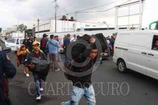 CIUDAD DE MÉXICO, 12SEPTIEMBRE2025.- Estudiantes que se identificaron cómo normalistas bloquearon la Central de Autobuses del Norte en exigencia de vales de combustible y la toma de tres camiones, lo que ocasionó el cierre del centro de transferencia. FOTO: ROGELIO MORALES/CUARTOSCURO.COM