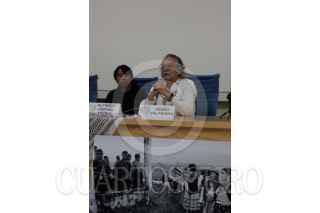 CIUDAD DE MÉXICO, 13SEPTIEMBRE2025.- Pedro Valtierra Ruvalcaba, fotoperiodista y director de la Agencia y Revista Cuartoscuro, ayer durante la presentación del libro "El Camino de la No-Violencia" por parte de la Organización de Las Abejas de Acteal presentación, realizada en las instalaciones del Facultad de Ciencias Políticas y Sociales de la Universidad Nacional Autónoma de México (UNAM). FOTO: EDUARDO GUTIÉRREZ PÉREZ/CUARTOSCURO.COM