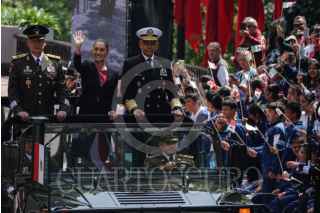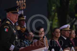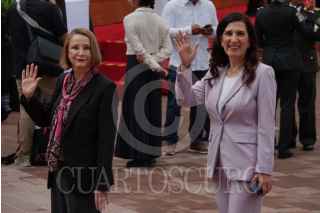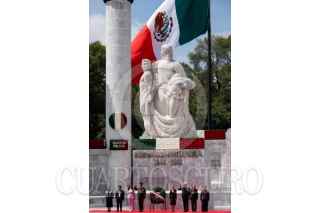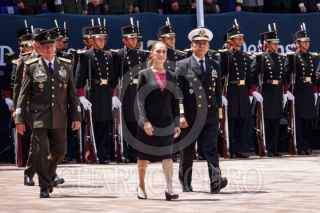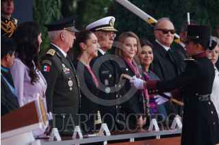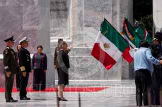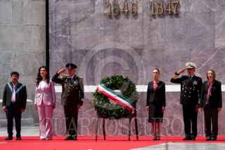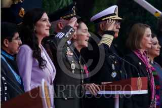 CIUDAD DE MÉXICO, 13SEPTIEMBRE2025.- Hugo Aguilar Ortiz, ministro de la Suprema Corte de Justicia de la Nación (SCJN); Kenia López Ramadán, presidenta de la Cámara de Diputados; Ricardo Trevilla Trejo, secretario de la Defensa Nacional; Claudia Sheinbaum Pardo, presidenta de México; Pedro Raymundo Morales, secretario de la Marina,; Laura Itzel Castillo, presidenta del Senado, y Clara Brugada Molina, jefa de gobierno de la Ciudad de México, durante la Ceremonia con motivo del 178 aniversario de la Gesta Heroica del Castillo de Chapultepec. FOTO: GALO CAÑAS/CUARTOSCURO.COM