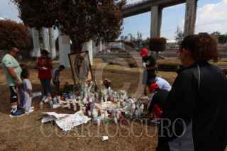 CIUDAD DE MÉXICO, 13SEPTIEMBRE2025.- Vecinas y vecinos continúan llevando veladoras al memorial que sigue creciendo en el Puente de la Concordia tras la explosión de la pipa de gas. Quienes asisten rezan por quienes sobrevivieron y continúan internados en los hospitales. FOTO: ROGELIO MORALES/CUARTOSCURO.COM