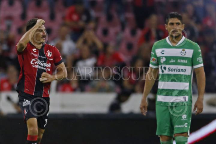 GUADALAJARA, JALISCO, 13SEPTIEMBRE2025.- Matías Cóccaro Jugador de Atlas, celebra su anotación, esto en partido correspondiente a la jornada 8 del Torneo Apertura 2025 de la Liga MX, en donde se enfrentan los equipos de Atlas vs Santos, en juego que se lleva a cabo en el Estadio Jalisco, el marcador al momento es de 2-1 a favor del equipo local. FOTO: FERNANDO CARRANZA GARCIA / CUARTOSCURO.COM