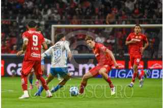 TOLUCA, ESTADO DE MÉXICO, 13SEPTIEMBRE2025.- Jesús Angulo medio de los Diablos de Toluca durante el encuentro ante la escuadra de Puebla, partido correspondiente a la jornada 8 del torneo Apertura 2025 de la Liga MX, con un marcador final 3-1. FOTO: CRISANTA ESPINOSA AGUILAR/CUARTOSCURO.COM
