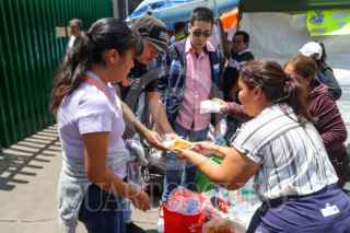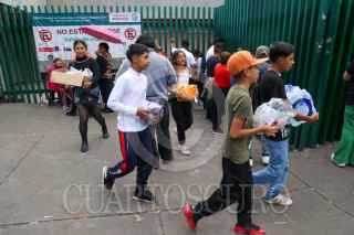 CIUDAD DE MÉXICO, 14SEPTIEMBRE2025.- Personas continúan ofreciendo ayuda; como comida, agua, y bebidas principalmente, a familiares de personas que resultaron heridos en el accidente de la volcadura una pipa en avenida Zaragoza. Desde temprano familias enteras llegan con los víveres que ofrecen sin distinción en las afueras de la UNAM Hospital de Traumatología, Ortopedia y Rehabilitación “Dr. Victorio de la Fuente Narváez” del IMSS. Hasta ayer por la noche la Secretaría de Salud informó que ya hay trece personas fallecidas debido a las graves quemaduras que sufrieron durante el incendio de la pipa, 40 personas aun permanecen hospitalizadas y 30 más que ya han sido de alta. FOTO: MOISÉS PABLO/CUARTOSCURO.COM