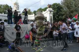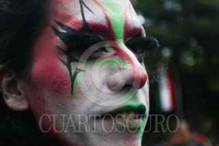 CIUDAD DE MÉXICO, 14SEPTIEMBRE2025.- Una joven caracterizado con los colores de la bandera de Palestina durante una protesta en la que colectivos y jóvenes exigieron justicia por la vivienda digna ante el fenómeno de la Gentrificación, mercantilización y desalojo de familias en diferentes predios de la capital. El acto se realizó frente al Hemiciclo a Juárez. FOTO: GRACIELA LÓPEZ/CUARTOSCURO.COM