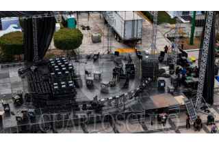 CULIACÁN, SINALOA, 14SEPTIEMBRE2025.- Cancelan el tradicional grito de la independencia a menos de 24 horas, gobernador Rubén Rocha Moya anunció la cancelación de los festejos en Culiacán, citando razones de seguridad y congruencia ante el clima de violencia que atraviesa el estado. La decisión provocó el desmantelamiento inmediato del escenario instalado en la explanada de la Unidad de Servicios Estatales, donde se presentarían artistas como Marisela, Miguel Bosé y El Coyote. Personal de logística retiró estructuras metálicas, plataformas de madera y pantallas electrónicas que ya estaban listas para el espectáculo. El evento multitudinario fue sustituido por un acto cívico con autoridades de los tres niveles de gobierno y representación militar. La cancelación se suma a la de otros municipios como San Ignacio y Navolato, que también suspendieron sus celebraciones por motivos de inseguridad. FOTO: JOSÉ BETANZOS ZÁRATE/CUARTOSCURO.COM