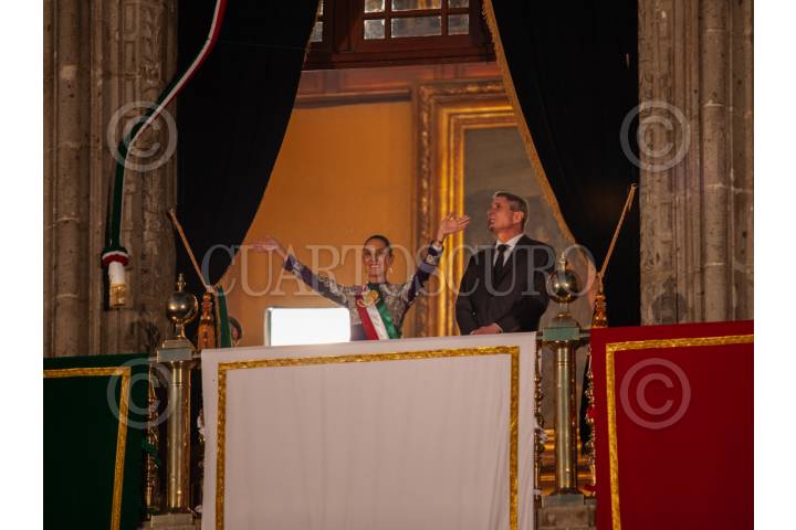 CIUDAD DE MÉXICO, 15SEPTIEMBRE2025.- Ante miles de asistentes Claudia Sheinbaum Pardo dio su primer grito de Independencia en la plancha del Zócalo como la primer mujer presidenta de México. FOTO: ANDREA MURCIA /CUARTOSCURO.COM