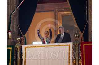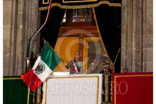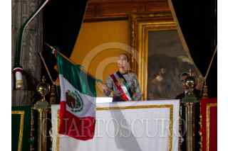 CIUDAD DE MÉXICO, 15SEPTIEMBRE2025.- Ante miles de asistentes Claudia Sheinbaum Pardo dio su primer grito de Independencia en la plancha del Zócalo como la primer mujer presidenta de México. FOTO: ANDREA MURCIA /CUARTOSCURO.COM