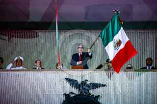 CULIACÁN, SINALOA, 15SEPTIEMBRE2025.- En una noche marcada por la tensión y el simbolismo, el gobernador Rubén Rocha Moya encabezó el acto protocolario por el 215 aniversario de la Independencia de México desde el balcón de Palacio de Gobierno, el mandatario dirigió un mensaje sobrio ante una plaza cívica sin festejos masivos, luego de que se cancelara el evento público por razones de seguridad. La decisión, tomada a menos de 24 horas del tradicional Grito, generó controversia entre la ciudadanía, que esperaba una celebración completa. FOTO: JOSÉ BETANZOS ZÁRATE/CUARTOSCURO.COM