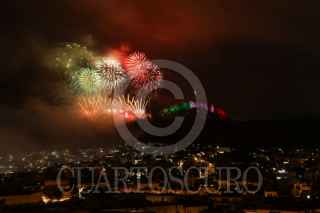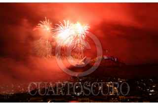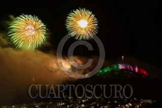 ZACATECAS, ZACATECAS, 15SEPTIEMBRE2025.- Fuegos artificiales desde el crestón de La Bufa, como parte de los festejos por el 215 aniversario del inicio de la Independencia de México. FOTO: ADOLFO VLADIMIR /CUARTOSCURO.COM