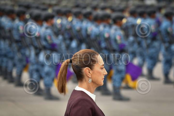 CIUDAD DE MÉXICO, 16SEPTIEMBRE2025.- Claudia Sheinbaum, presidenta de México, durante el pase de revista de los continentes de las fuerzas armadas para el desfile cívico militar conmemorativo del 215 Aniversario de la Independencia en México que partió del zócalo capitalino. FOTO: MARIO JASSO/CUARTOSCURO.COM