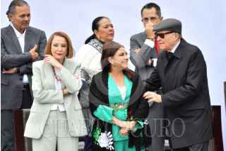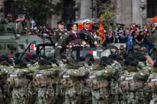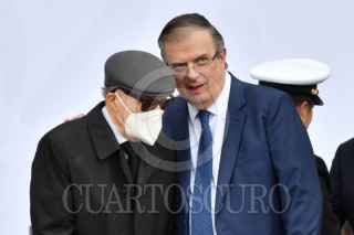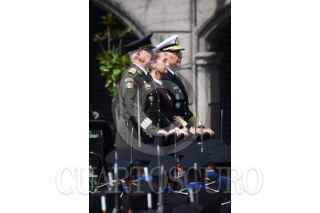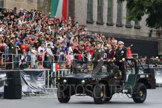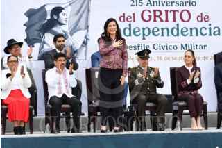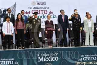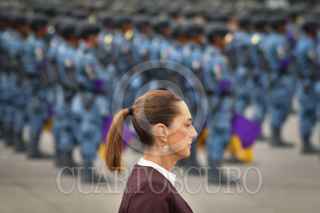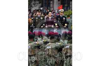 CIUDAD DE MÉXICO, 16SEPTIEMBRE2025.- Claudia Sheinbaum, presidenta de México, durante el pase de revista de los continentes de las fuerzas armadas para el desfile cívico militar conmemorativo del 215 Aniversario de la Independencia en México que partió del zócalo capitalino. La acompañan Ricardo Trevilla Trejo, secretario de la Defensa Nacional, y Raymundo Pedro Morales, secretario de Marina. FOTO: MARIO JASSO/CUARTOSCURO.COM