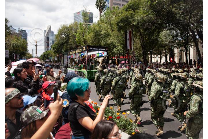 CIUDAD DE MÉXICO, 16SEPTIEMBRE2025.- Desfile cívico militar conmemorativo del 215 Aniversario de la Independencia en México pasa por Avenida Reforma a la altura del Ángel de la Independencia. FOTO: ANDREA MURCIA /CUARTOSCURO.COM