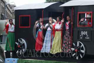 CIUDAD DE MÉXICO, 16SEPTIEMBRE2025.- Mujeres que representan la Revolución mexicana durante el Desfile cívico militar conmemorativo del 215 Aniversario de la Independencia en México en el recorrido en el Centro Histórico. FOTO: GRACIELA LÓPEZ/CUARTOSCURO.COM