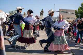TIJUANA BAJA CALIFORNIA 16SEPTIEMBRE2025.-Parejas de danza folclórica durante el desfile por el Día de la Independencia. Cientos de familias acudieron este 16 de septiembre al tradicional desfile por el 215 Aniversario de la Independencia de México, realizado en Paseo de los Héroes, en la Zona Río de Tijuana. En el evento participaron corporaciones de seguridad, instituciones educativas, asociaciones civiles y cuerpos de auxilio, que mostraron su trabajo y compromiso con la comunidad. El alcalde Ismael Burgueño presenció el desfile desde el balcón del Ayuntamiento, acompañado de su gabinete. FOTOS JOSÉ VARGA/ CUARTOSCURO.COM