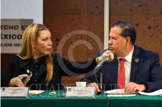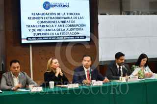 CIUDAD DE MÉXICO, 17SEPTIEMBRE2025.- Los legisladores: Selene Ávila; Ricardo Mejía Berdeja y Javier Herrera Borunda, durante la reanudación de la tercera reunión extraordinaria de la Comisiones Unidas de transparencia anticorrupción, y de vigilancia de la auditoría superior de la federación en la que se aprobaron los criterios de la convocatoria pública para buscar al nuevo titular del Órgano Interno de Control (OIC) de la Fiscalía General de la República (FGR). FOTO: MARIO JASSO/CUARTOSCURO.COM
