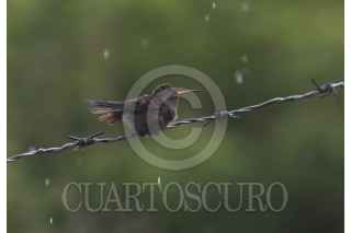 CUERNAVACA, MORELOS, 17SEPTIEMBRE2025.- Un colibrí oscuro, prieto u opaco ( Phaeoptila sordida) se posa sobre un alambre durante la lluvia de esta tarde. Esta especie es endémica de nuestro país y se alimentan principalmente de néctar de las flores, su vuelo ágil y rápido le permite ir hacia adelante y detrás e inclusive mantenerse suspendido en el aire mientras se alimenta. FOTO: MARGARITO PÉREZ RETANA/CUARTOSCURO.COM