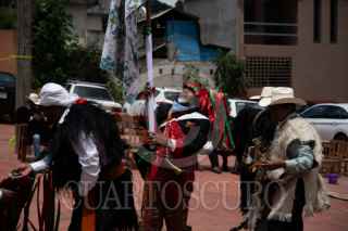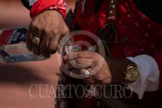 SAN JUAN CHAMULA, CHIAPAS, 18SEPTIEMBRE2025.- De regreso, las vasijas rebosan con el agua sagrada del ojo de agua. El Paxón recibe con solemnidad los recipientes y, bajo su guía, las autoridades correspondientes proceden al lavado ritual de la pequeña ropa de San Mateo. Este acto, sencillo en apariencia, encierra una profunda devoción: cada pliegue limpio, cada gota vertida, renueva el vínculo entre la comunidad y su santo patrono, preparando lo terrenal para lo celestial. FOTO: ISABEL MATEOS HINOJOSA /CUARTOSCURO.COM