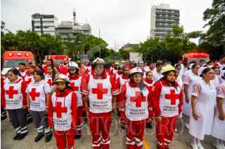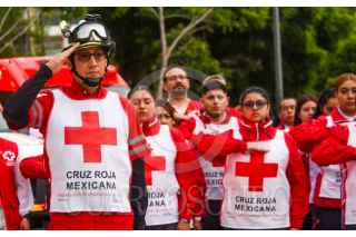 CIUDAD DE MÉXICO. 19SEPTIEMBRE2025.- Ceremonia conmemorativa a los sismos de hace 40 años y 8 que azotaron a la Ciudad de México. Evento en la explanada de la Cruz Roja en la colonia Polanco. FOTO: CUARTOSCURO.COM