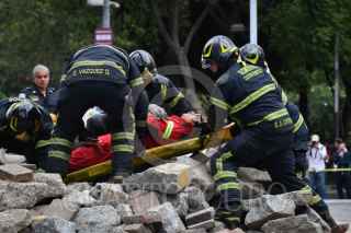 CIUDAD DE MÉXICO, 19SEPTIEMBRE2025.- Personal del Heroico Cuerpo de Bomberos realizaron ejercicios hipotéticos de rescate sobre avenida Juárez durante el Simulacro Nacional 2025 en el marco del aniversario de los sismos de 1985 y 2017. El macro simulacro se realiza con el propósito de fomentar la cultura de la protección civil en la población y contribuir con el fortalecimiento de las capacidades de reacción ante dicho fenómeno natural. FOTO: MARIO JASSO/CUARTOSCURO.COM