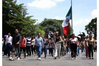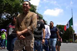CUERNAVACA, MORELOS, 19SEPTIEMBRE2025.- En punto de las 12:00 horas llego un mensaje a los celulares para probar la funcionalidad del Sistema Nacional de Alertas del Gobierno de México, como parte del Segundo Simulacro Nacional 2025. En la imagen, el desalojo de trabajadores del Palacio de Gobierno de Morelos. FOTO: MARGARITO PÉREZ RETANA/CUARTOSCURO.COM