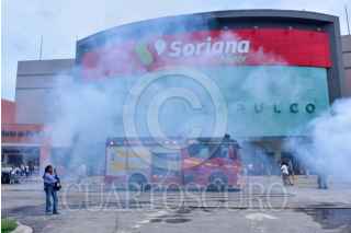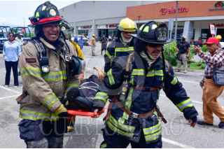 ACAPULCO, GUERRERO, 19SEPTIEMBRE2025.- El cuerpo de Bomberos de Acapulco realizó un ensayo de incendio durante el Simulacro Nacional de Protección Civil por sismo de 8.1 grados, en la Plaza Patio en Acapulco. Este ejercicio conmemora el sismo del 19 de septiembre de 1985, en donde miles de personas perdieron la vida en la Ciudad de México. FOTO: CARLOS CARBAJAL/CUARTOSCURO.COM
