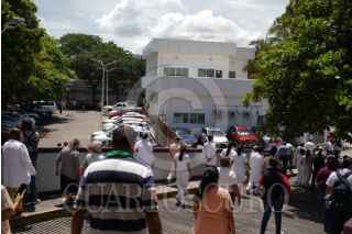 VERACRUZ, VERACRUZ, 19SEPTIEMBRE2025.- Personal Médico, trabajadores y pacientes del Hospital Regional de Veracruz evacuaron el edificio después de recibir en sus teléfonos celulares un mensaje de alerta como parte del protocolo por el Simulacro Nacional ante un sismo. FOTO: VICTORIA RAZO/CUARTOSCURO.COM