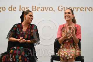 CHILPANCINGO DE LOS BRAVO, GUERRERO, 19SEPTIEMBRE2025.- Claudia Sheinbaum, presidenta de México, encabezó el evento protocolario en el Polideportivo para dar a conocer los avances de proyectos en la entidad durante su primer año de gobierno. La acompaña: Evelyn Salgado, gobernadora de Guerrero. FOTO: PRESIDENCIA/CUARTOSCURO.COM