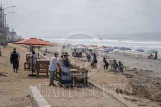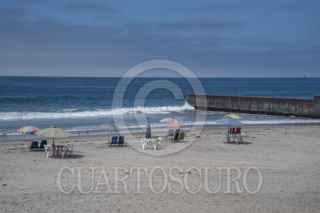 TIJUANA BAJA CALIFORNIA 19SEPTIEMBRE2025.-Personas saliendo de la playa durante el simulacro de Tsunami. Por primera vez se realizó un simulacro de tsunami en Playas de Tijuana, con la participación de 100 personas, así como elementos de Bomberos y Protección Civil Municipal. El ejercicio incluyó el cierre de vialidades desde el Faro y simuló un tsunami de magnitud 9.5 con epicentro en Hawái, lo que daría un margen de 30 minutos para evacuar. Personal de Protección Civil brindó información preventiva a los asistentes, en el marco de la conmemoración por los 40 años del sismo de 1985. FOTO OMAR MARTÍNEZ / CUARTOSCURO.COM