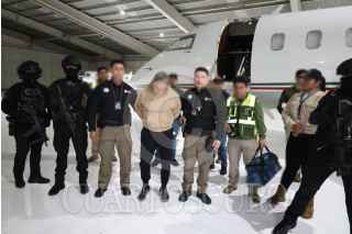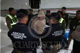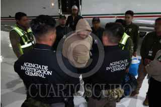 TOLUCA, ESTADO DE MÉXICO, 18SEPTIEMBRE2025.- Hernan Bermúdez, ex Secretario de Seguridad de Tabasco y presunto líder del grupo criminal La Barredora, arribó al Aeropuerto Internacional de Toluca, tras ser expulsado de Paraguay. Al llegar elementos de la Agencia de Investigación Criminal le leyeron sus derechos para después ser trasladado al Penal del Altiplano. FOTO: CORTESIA SSPC/CUARTOSCURO.COM