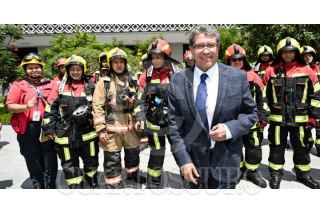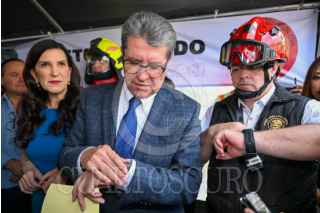 CIUDAD DE MÉXICO. 19SEPTIEMBRE2025.- Ricardo Monreal Ávila, coordinador de Morena junto con la presidenta de la mesa directiva de la cámara baja, Kenia López Rabadán; durante el simulacro de Sismo en el recinto de San Lázaro. FOTO: CUARTOSCURO.COM