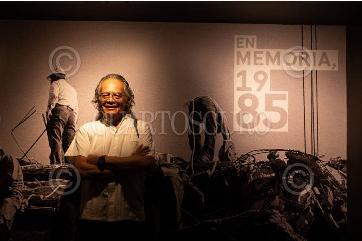 CIUDAD DE MÉXICO, 19SEPTIEMBRE2025.- Pedro Valtierra, director de la revista y agencia Cuartoscuro, encabezó la inauguración de su exposición fotográfica "En Memoria, 1985" en la Cineteca Nacional. FOTO: CAMILA AYALA BENABIB/CUARTOSCURO.COM