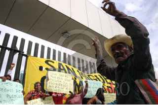 OAXACA, OAXACA, 27NOVIEMBRE2007.- Habitantes de San Miguel Chimalapas, encabezados por Roberto López Rosado, después de permanecer más de 24 horas frente al Instituto Estatal Electoral y no recibir respuesta se trasladaron a la sede del Congreso para realizar una manifestación y exigir que sean respetados los acuerdos emanados de la comunidad y sea reconocido el presidente municipal elegido por usos y costumbres. FOTO: MAX NUÑEZ/CUARTOSCURO.COM
