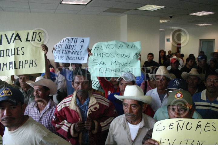 OAXACA, OAXACA, 27NOVIEMBRE2007.- Habitantes de San Miguel Chimalapas, encabezados por Roberto López Rosado, después de permanecer más de 24 horas frente al Instituto Estatal Electoral y no recibir respuesta se trasladaron a la sede del Congreso para realizar una manifestación y exigir que sean respetados los acuerdos emanados de la comunidad y sea reconocido el presidente municipal elegido por usos y costumbres. FOTO: MAX NUÑEZ/CUARTOSCURO.COM