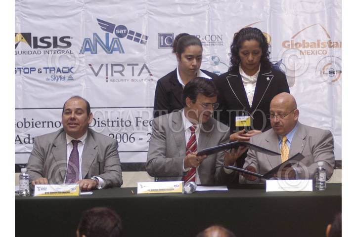 MÉXICO,D,F.,28NOVIEMBRE2007.- Rodolfo Felix Pocurador de justicia del distrito federal,Marcelo Ebrard Casaubon jefe de gobierno del distrito federal, Amelio Gomez jefe de la policia Judicial firman el convenio de colaboración dela PGJDF y la asociación de rastreo y protección FOTO: IVAN MENDEZ/CUARTOSCURO.COM