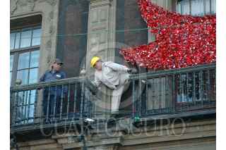MÉXICO D.F., 28NOVIEMBRE2007.- A pesar de que el domingo pasado un trabajador del gobierno del Distrito Federal murió a causa de una caída de mas de 18 metros, estos mismos trabajadores continúan trabajando en lo alto sin portar algún equipo de seguridad o algún arnés que los salve de alguna posible caída. FOTO: RODOLFO ANGULO/CUARTOSCURO.COM