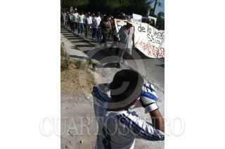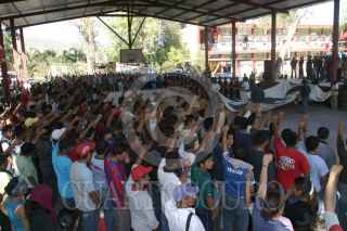 TIXTLA. GUERRERO, 02DICIEMBRE2007. Durante el marco del 33 aniversario luctuoso del luchador social Lucio Cabañas cientos de habitantes campesinos y estudiantes marcharon de Tixtla hacia la universidad Raúl Isidro Burgos de Ayotzinapan. Al finalizar la marcha estudiantes de la universidad realizaron un mitin exigiendo pare la represesión en contra de estudiantes y sean liberados los estudiantes detenidos en Acapulco, asi como la revocación para desaparecer la licenciatura a nivel primaria. FOTO: SAUL LOPEZ ESCORCIA/CUARTOSCURO.COM