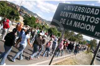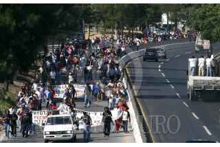 CHILPANCINGO. GUERRERO, 03DICIEMBRE2007.- Estudiantes de la normal rural de Ayotzinapa acompañados de padres de familia, marcharon sobre la autopista del sol hacia las instalaciones del palacio de gobierno de Guerrero, exigiendo al gobernador Zeferino Torreblanca la resolucion ante el caso de los estudiantes detenidos en Acapulco y la destitucion del secretario de Educación. FOTO: SAÚL LÓPEZ/CUARTOSCURO.COM