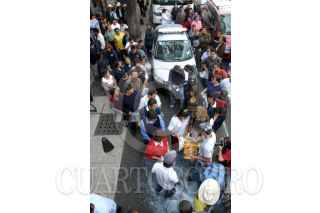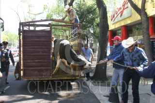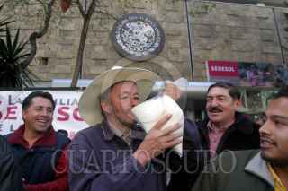 MÉXICO, D.F., 04DICIEMBRE2007.- Productores de Leche de varios estados de la República Mexicana llegaroncon varias camionetas cargadas de vacas que bajaron en la sede de la SEDESOL ubicada en avenida Reforma para pedir el aumento de precio en su producto y como protesta regalaron el lacteo a la gente que iba pasando por el lugar. FOTO: PEDRO MARRUFO/CUARTOSCURO.COM