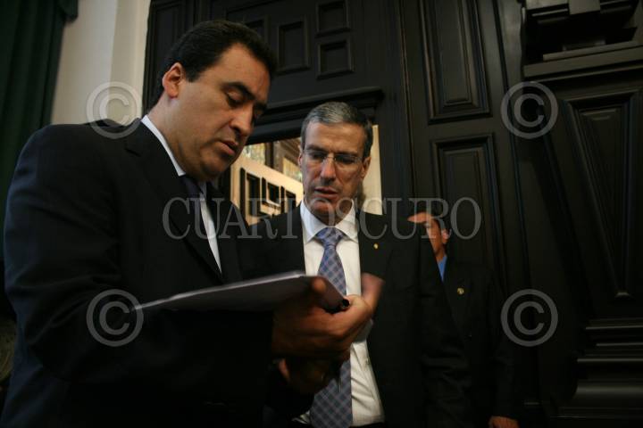 MÉXICO,D.F 11DICIEMBRE2007.- El senador Heladio Ramírez le da un abrazo al senador Alejandro Zapata, durante la sesión ordinaria en el senado de la república. FOTO: SASHENKA GUTIERREZ/CUARTOSCURO.COM