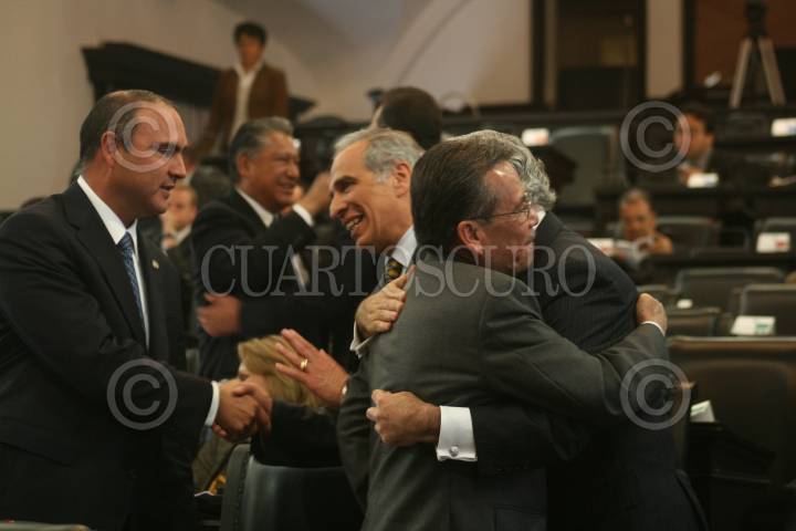 MÉXICO,D.F 11DICIEMBRE2007.- El senador Heladio Ramírez le da un abrazo al senador Alejandro Zapata, durante la sesión ordinaria en el senado de la república. FOTO: SASHENKA GUTIERREZ/CUARTOSCURO.COM