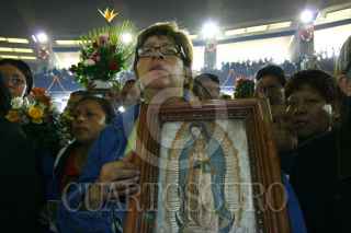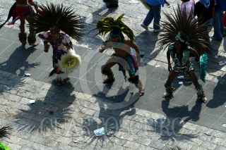 MÉXICO, D.F. 12DICIEMBRE2007.- Decenas de fieles procedentes de diferentes estados de la república acudieron a la Villa para festejar a la Virgen de Guadalupe. Danzantes realizan un ritual a las afueras de dicho templo. FOTO: PAOLA HIDALGO/CUARTOSCURO.COM