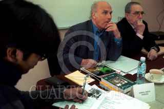 MEXICO, D.F, 08MARZO2001.-El periodista polaco Ryszard Kapuscinski junto a Gabriel García Marquez en el foro de periodismo que organiza la UIA . FOTO: Pedro Valtierra/ CUARTOSCURO.COM