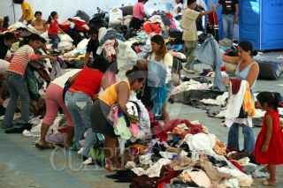 VILLAHERMOSA, TABASCO, 20DICIEMBRE2007.- Cientos de pobladores tabasqueños que son damnificados acuden a los diferentes centros de acopio en donde realizan largas colas para esperar su turno y así poder escoger mudas de ropa que fueron donadas voluntariamente. FOTO: MARCO POLO GUZMÁN HERNÁNDEZ/CUARTOSCURO.COM